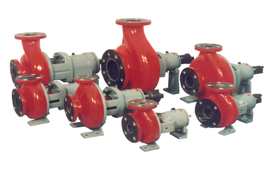Centrifugal Chemical process pumps in Horizontal and Vertical versions in all major MOCs from an an approved Calibrated Hydraulic Test Lab with capacity up to 3600 M3/Hr.